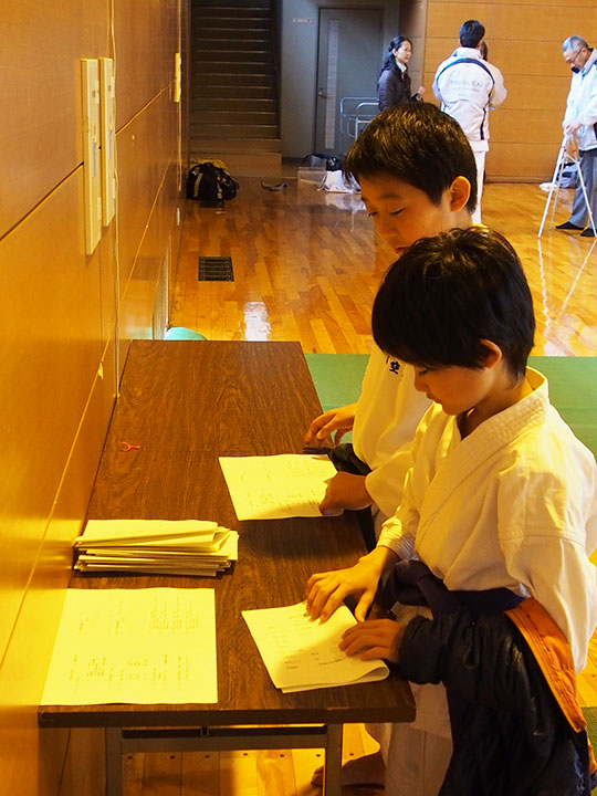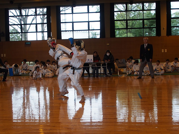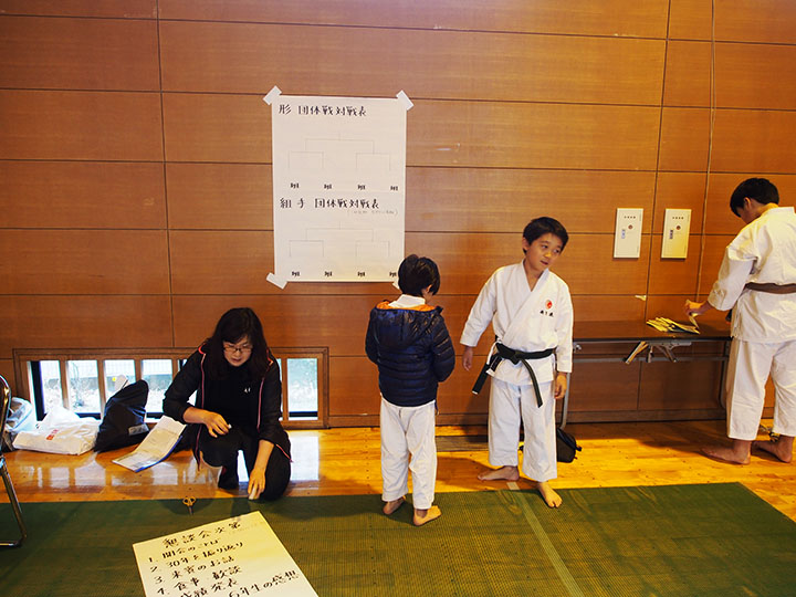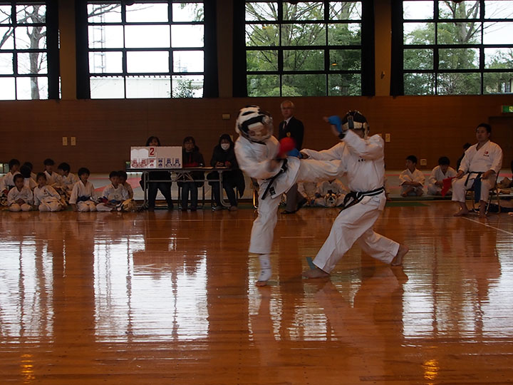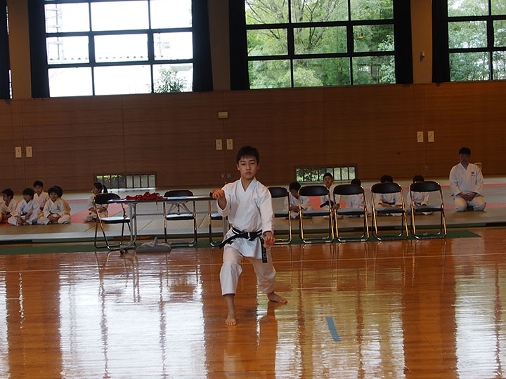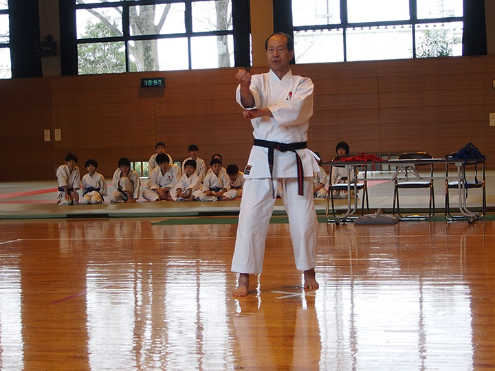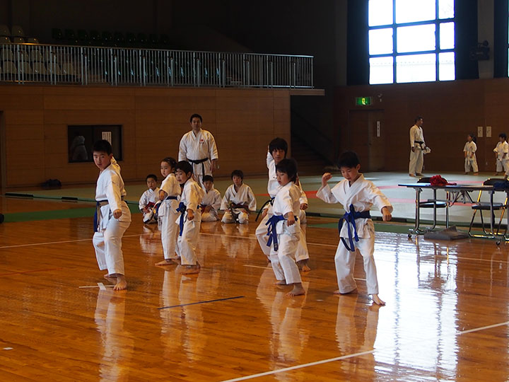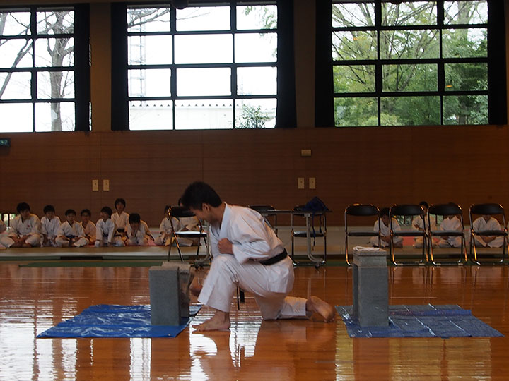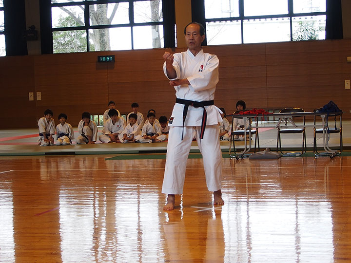 次第 形団体戦(4班優勝) 組手団体戦(1班優勝)親子演武(全日本空手道連盟第二指定形:二十八歩(ニーパイポ)) 松涛館流形演武:燕飛(エンピ) 試割り:中澤指導員 試割り:宮寺指導員補 卯野宗家 形演武:五十四歩(ゴジュウシホ) 模範組手演武 懇親会 記念品贈呈